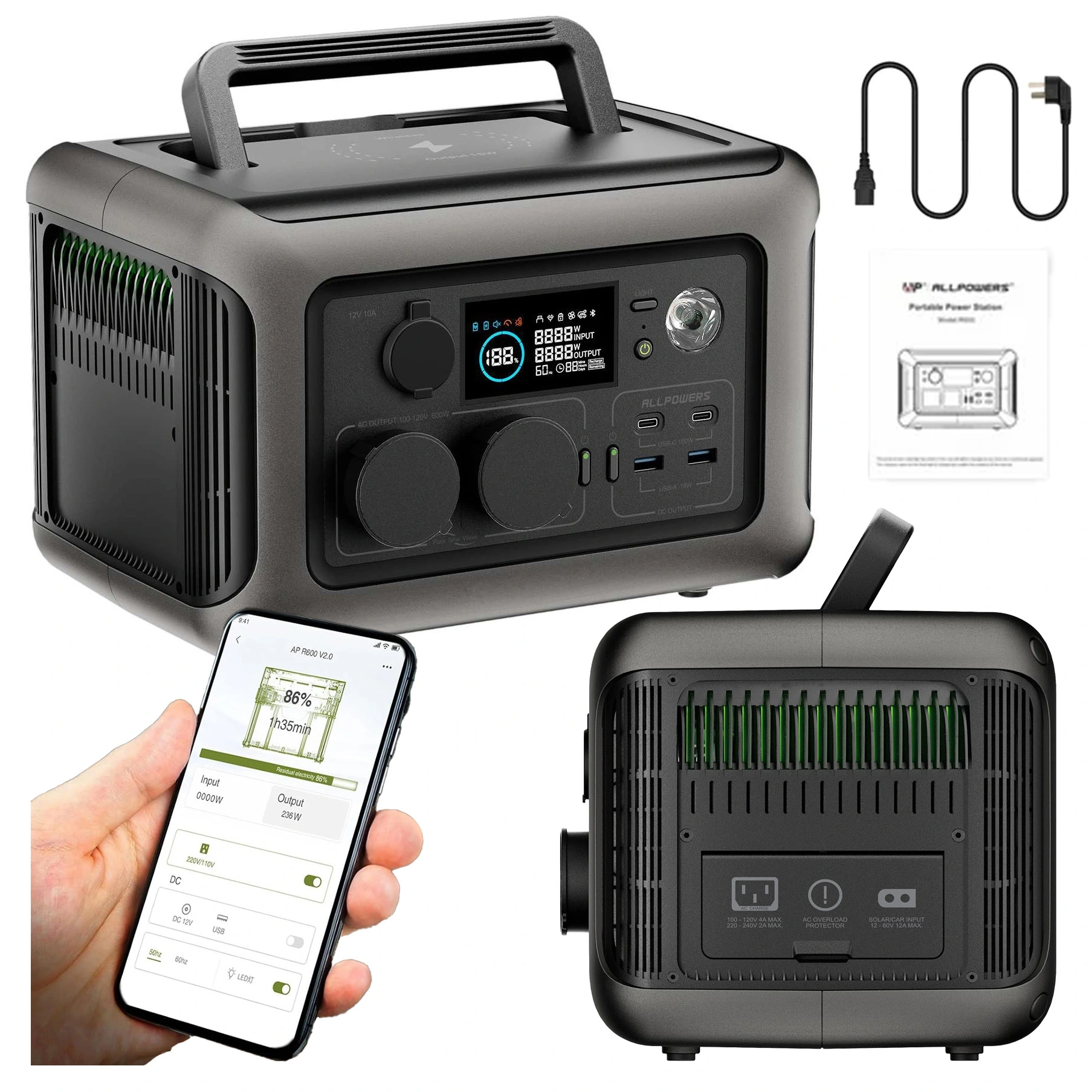 Przenośna stacja zasilania AllPowers R600 Czarna - OUTLET
