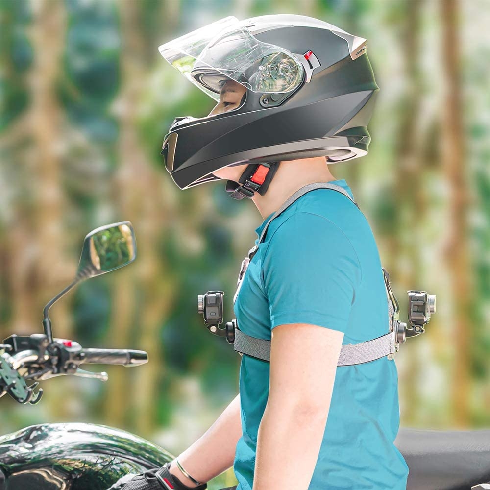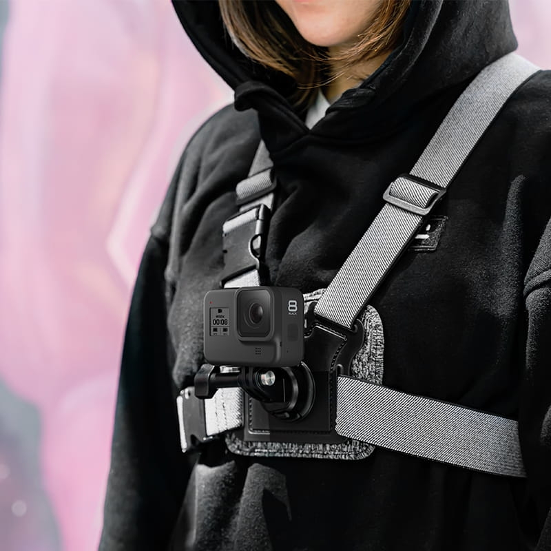 Chesty to w pełni regulowane szelki do mocowania kamery na klatce piersiowej. Idealne do nagrywania jazdy na nartach, motocyklu lub rowerze, sportów kajakarskich i wielu innych. Dzięki umieszczeniu GoPro na Chest Mount zyskujesz nową, bardzo ciekawą perspektywę. Dodatkowo zapewniamy sobie wolne ręcę, dzięki czemu kamera nam nie przeszkadza podczas uprawiania aktywności.
